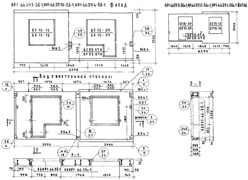 НР1-66.29.4-2б-1 Наружная стеновая панель рядовая по Серии 1.132-1.