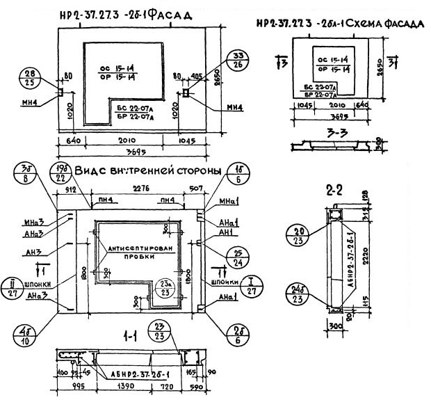 НР2-37.27.3-2б-1    Наружная стеновая панель рядовая по Серии 1.132-1.