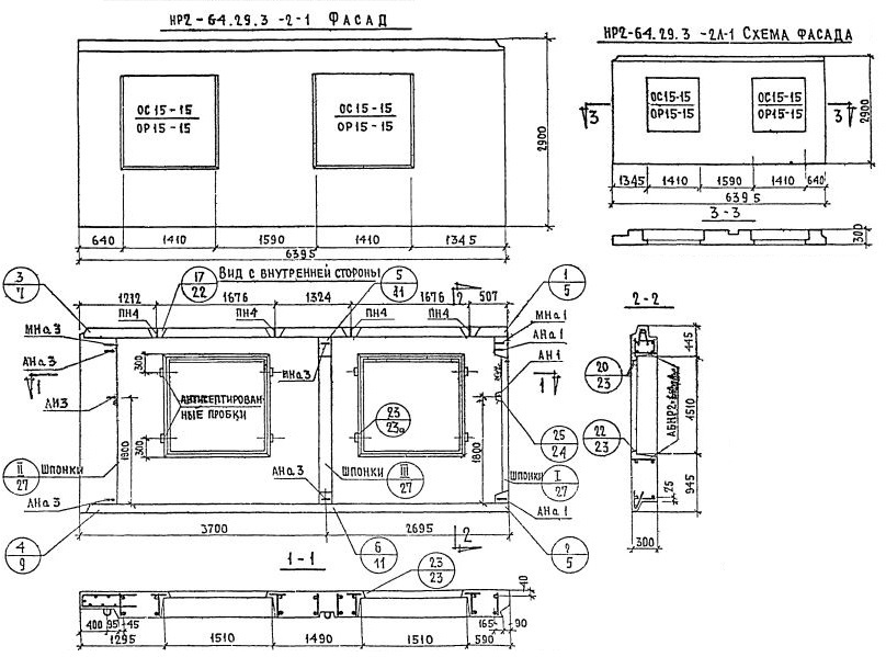 НР2-64.29.3-2л-1   Наружная стеновая панель рядовая по Серии 1.132-1.