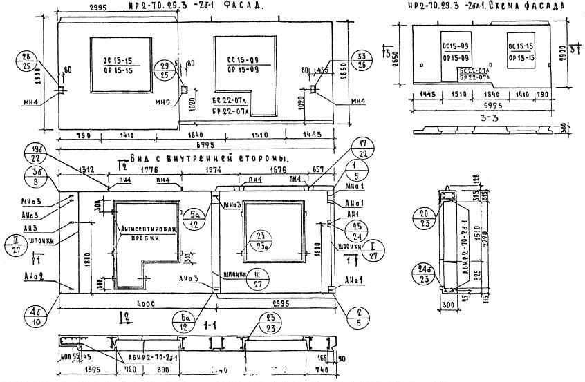 НР2-70.29.3-2бл-1 Наружная стеновая панель рядовая по Серии 1.132-1.